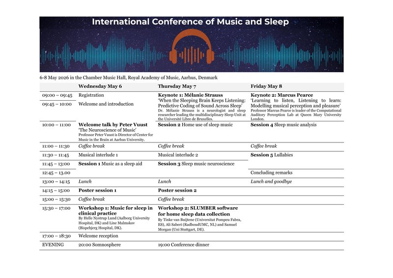 | 11.45 – 13.00 | Talk session 1: Music as a sleep aid